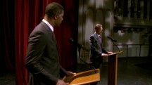 beginnt das Fernseh-Rededuell zwischen Präsident Palmer