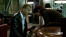 machen soll. Dana hat sich in einen leerstehenden Raum mit einer Computerstation zurückgezogen und lotst Kevin und seinen Kumpel Nick in das Lagerhaus der Polizei. Als die beiden das Geld finden, gibt Dana ihnen die Anweisung innerhalb der nächsten 15 Minuten zu verschwinden, da dann die nächste Runde des Wachpersonals ansteht. Kevin will das Gebäude umgehend verlassen, doch Nick hat andere Pläne. Das Lagerhaus ist voller beschlagnahmter Ware. Seiner Meinung nach ist noch genügend Zeit sich intensiver umzusehen. Vladimir beginnt damit seine Kontakte anzurufen, um sich nach dem nuklearen Material umzuhören. Er hat jedoch keinen Erfolg. Als er beobachtet, wie Jack Renee ansieht, befiehlt er Lugo Jack in einen anderen Raum zu bringen. Bazhaev hat einen Priester, Vater Gregor, zu sich bestellt und bittet ihn, Oleg im Hinterhof zu begraben. Daraufhin bittet er Josef dem Priester bei der Beerdigung zu helfen. Er versucht seinem Sohn zu erklären, warum er Oleg erschossen hat, doch er wird dabei von einem Telefonanruf unterbrochen. Vladimir ist am Apparat. Bazhaev ist wütend über die Unterbrechung und fährt Vladimir entsprechend an. Er versichert Vlad, dass niemand so verrückt wäre mit nuklearen Brennstäben zu handeln. Vlad hat mittlerweile alle Kontakte angerufen und will seine Nachforschungen aufgeben. Wenn selbst Bazhaev versichert, nichts über den Handel mit solchen Brennstäben zu wissen, dann entspricht dieses wohl den Tatsachen. Renee gibt sich damit jedoch nicht zufrieden und drängt ihn weitere Kontakte anzurufen. Bazhaev, durch Vlads Anruf alarmiert, kontaktiert die Männer, die die Brennstäbe transportieren. Er befiehlt den Lastwagen zu stoppen. Solange er nicht weiß, woher Vladimir die Informationen über die Brennstäbe hat, soll der Wagen in der Nähe des Freeway auf weitere Instruktionen warten. Taylor will von Hassan wissen, wie er gedenkt weiter vorzugehen. Er verspricht ihr, dass die Verhaftungen innerhalb der nächsten Stunden enden werden. Der Mann aus seiner Delegation, der ebenfalls verhaftet wurde, wird dann entweder entlassen oder angeklagt. Nach Beendigung des Gesprächs informiert Tarin Hassan, dass Jamot jegliches Wissen über Farhads Pläne abstreitet. Er glaubt das der Mann unschuldig ist, Hassan ist davon jedoch nicht überzeugt. Er gibt Tarin den Befehl Frau und Kinder von Jamot verhaften zu lassen. Tarin ist entsetzt über den Befehl und versucht Hassan die Sache auszureden. Dieser scheint auch darauf einzugehen, doch nachdem er seinen Sicherheitschef aus dem Raum geschickt hat, gibt er Nabeel, einem von Tarins Männern, den gleichen Befehl. Er will außerdem, dass Nabeel einen Blick in Tarins Akten wirft. Er will wissen, ob er seinem Sicherheitschef überhaupt noch vertrauen kann. Kevin und Nick durchwühlen noch immer das Lagerhaus. Als sie endlich verschwinden wollen, hören sie wie der Wachmann das Lagerhaus betritt. Kevin kontaktiert Dana und will, dass sie ihnen hilft. Die Tür, zu der sie die beiden lotst, ist jedoch verschlossen. Da es keinen anderen Ausgang gibt, müssen sie sich am Wachmann vorbeischleichen. Es scheint auch zu gelingen, doch plötzlich hebt Nick einen Baselballschläger, den er im Lagerhaus gefunden hat, und schlägt den Wachmann nieder. Als er immer wieder auf den Mann einschlägt, zieht ihn Kevin schließlich Richtung Ausgang und beide fliehen. Tarin sucht Kayla auf und will mit ihr über ihren Vater reden. Er weiß, dass Hassan hinter seinem Rücken die Verhaftung von Jamots Familie veranlasst hat. Er bittet Kayla mit ihrem Vater zu reden und zu versuchen ihn zur Vernunft zu bringen. Tarin befürchtet, dass Omar durch sein Verhalten alles kaputt machen wird, für das er so hart gearbeitet hat. Es klopft an der Tür. Als Kayla sie öffnet, stehen Nabeel und seine Leute vor ihr. Sie suchen Tarin um ihn zu verhaften. Kayla behauptet, nicht zu wissen wo er ist, aber Tarin hält nichts vom Versteck spielen und er tritt zu ihr hinaus in den Flur. Während Nabeels Männer ihn verhaften, besteht Kayla darauf, ihren Vater zu sprechen. Nabeel hat jedoch den Befehl erhalten, niemanden zu Hassan zu lassen. Auch nicht seine Tochter. Inzwischen hat Vlad alle seine Kontakte abtelefoniert und keine Spur des nuklearen Materials finden können. Niemand scheint etwas davon zu wissen. Renee will, dass er alle noch einmal anruft. Er weigert sich jedoch, da es einfach keinen Sinn macht, aber Renee lässt nicht locker. Sie erklärt ihm, wie wichtig ihr der Deal ist und das sie ihn unbedingt durchziehen will. Der Deal ist der einzige Grund warum sie überhaupt hier ist. Wegen Vlad selbst ist sie sicherlich nicht zurückgekommen. Ihre Worte machen ihn wütend und er beginnt sie zu schlagen. Renee ist außer sich vor Wut und Verzweiflung. Sie greift nach einem Messer und beginnt auf Vlad einzustechen. Jack, der von draußen die lautstarke Auseinandersetzung der beiden hört, kommt eilig ins Zimmer gestürmt. Es ist jedoch zu spät, Vladimir ist bereits tot. Als Jack versucht Renee wegzuziehen, dreht sie sich wie von Sinnen um und sticht ihm in den Bauch. Jack geht zu Boden und Renee wird klar, was sie gerade getan hat. In dem Moment kommt Lugo in den Raum, bevor er jedoch auf die Situation reagieren kann, greift Jack nach dem Messer, schleudert es in die Richtung des Russen und trifft diesen im Hals. Vlads restliche Männer haben mittlerweile ebenfalls gemerkt, dass etwas nicht stimmt, doch Jack kann ihre Silhouetten durch die milchig-transparenten Wände sehen und erschießt sie, bevor sie den Raum betreten können. Als alle Gegner ausgeschaltet sind, nimmt Jack Renee in den Arm und sie beginnt zu weinen. Nachdem Renee sich einigermaßen beruhigt hat, versorgt Jack seine Stichwunde und kontaktiert die CTU. Er versucht Renee zu schützen indem er behauptet, Vlad hätte sie angegriffen, aber Hastings glaubt ihm nicht. Er will eine Autopsie durchführen lassen. Jack informiert Hastings darüber, dass die Aktion trotz allem ein Erfolg war. Sie k